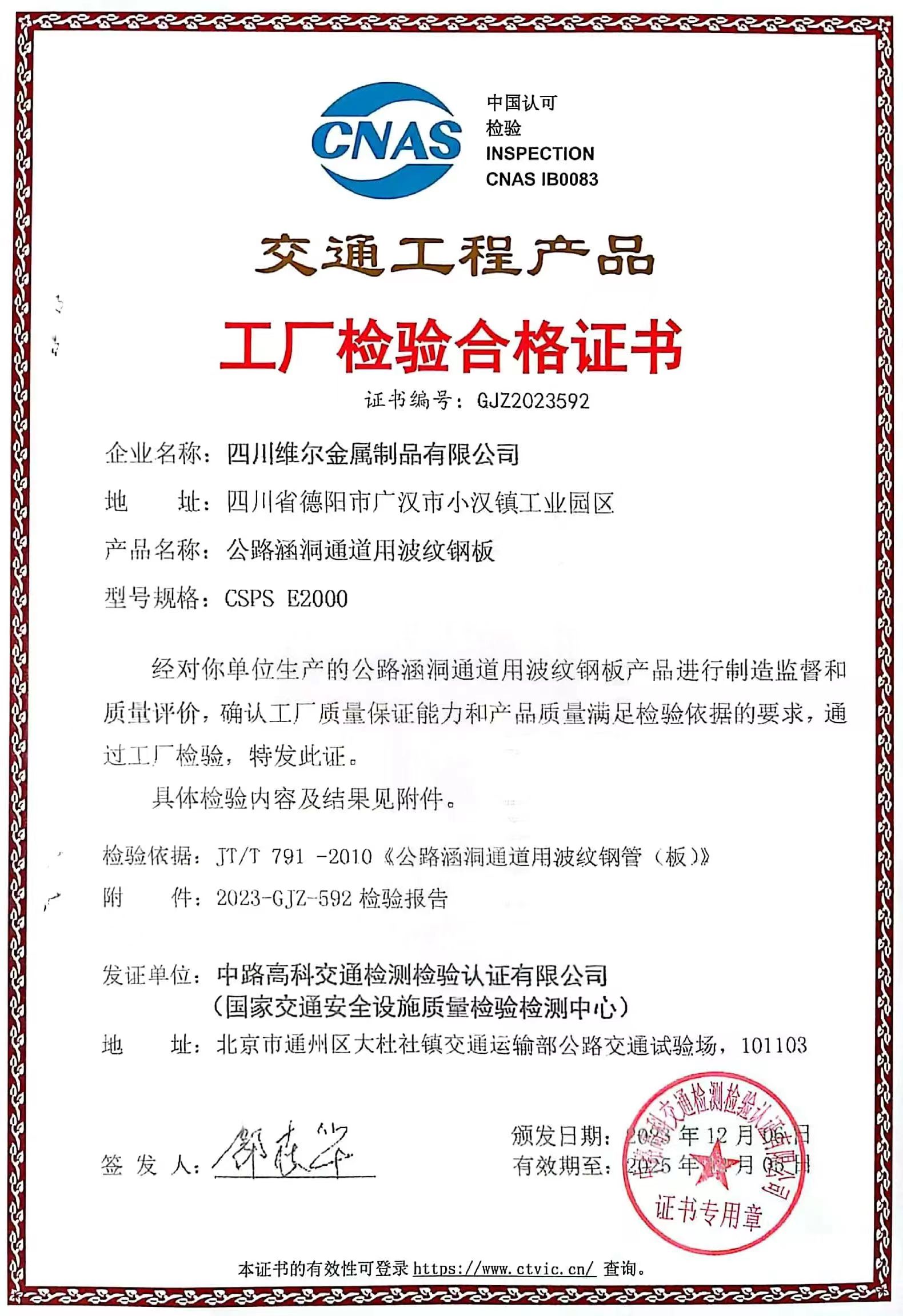 工厂检验合格证书